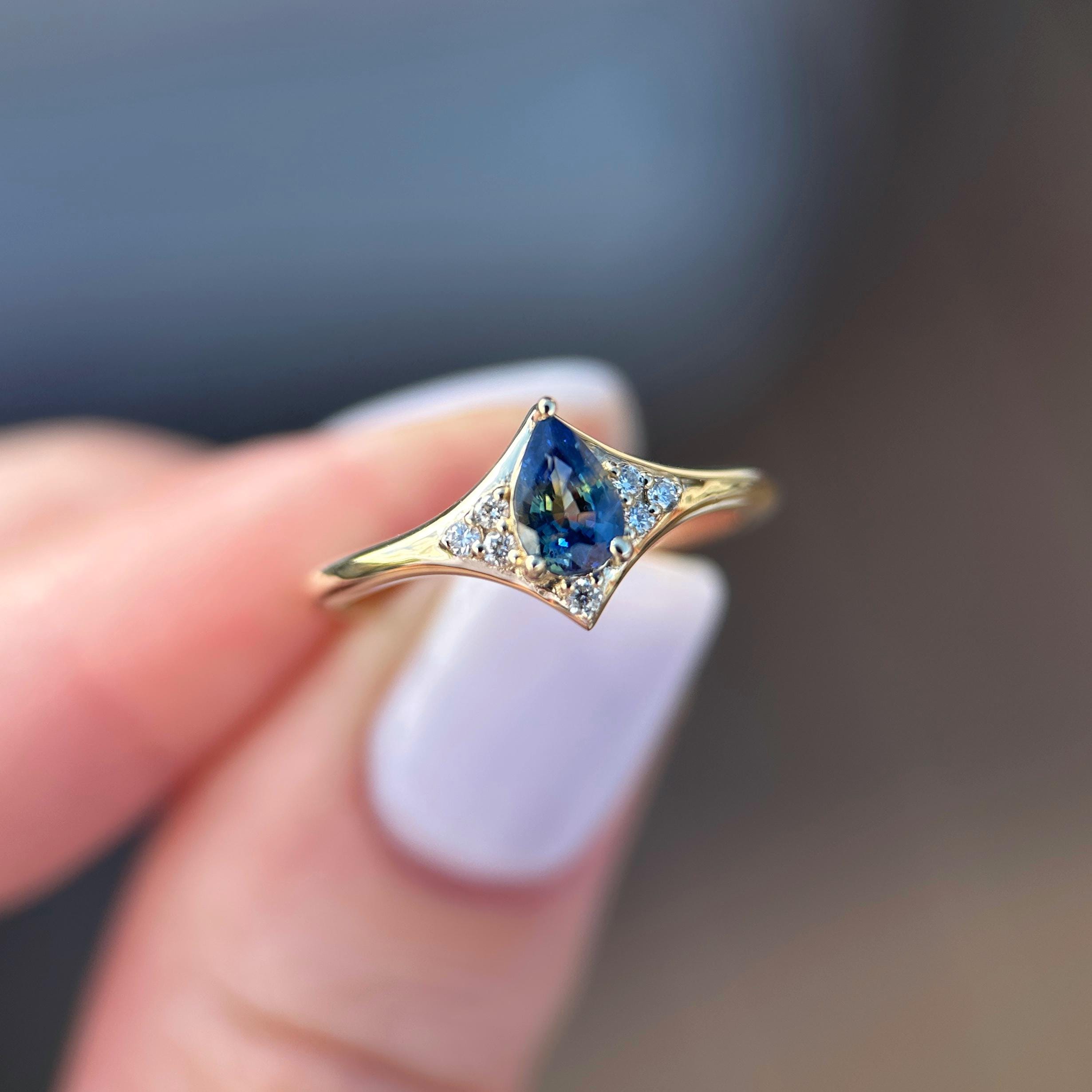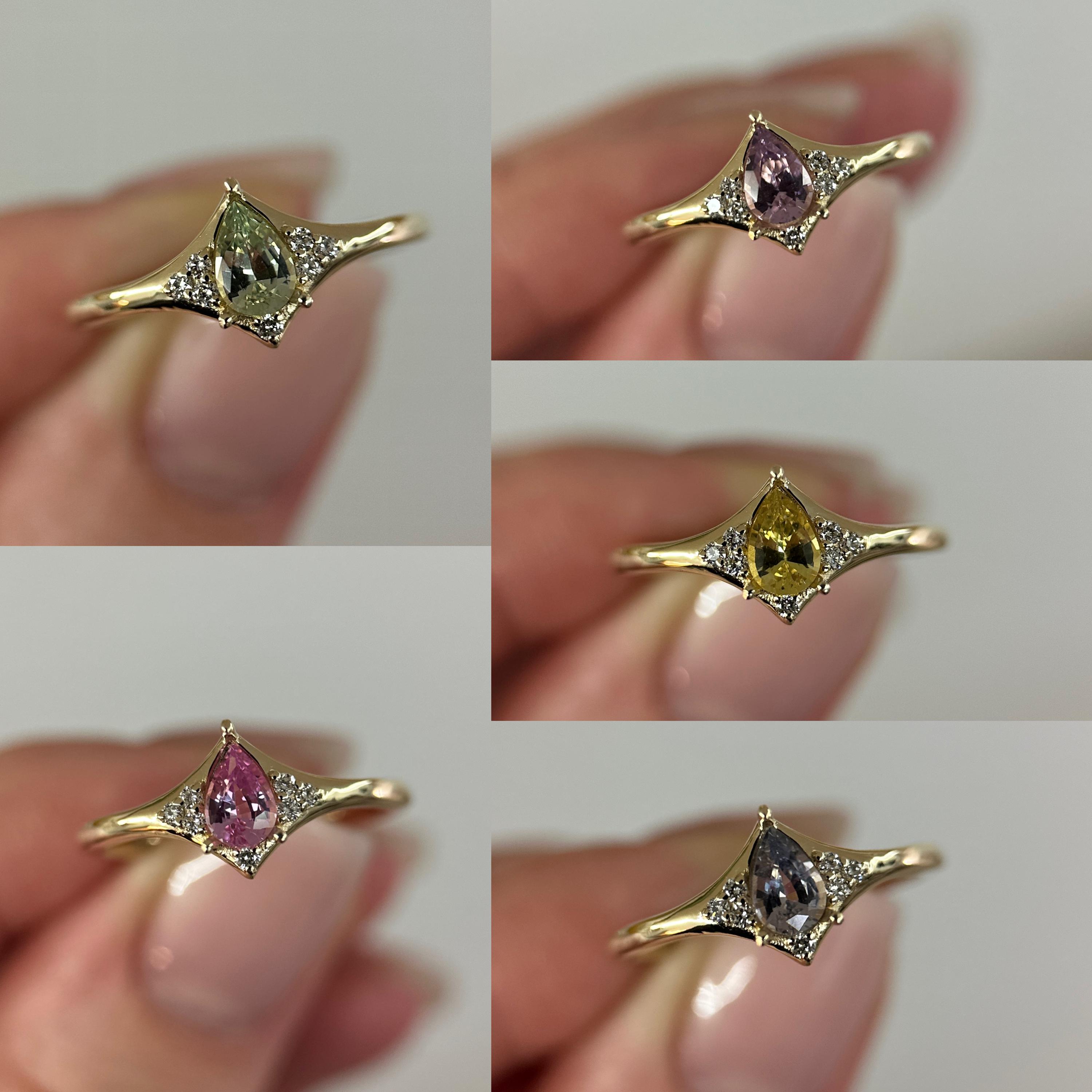 Custom-made 14K Yellow gold Aurora ring with Pear Sapphire and Diamonds