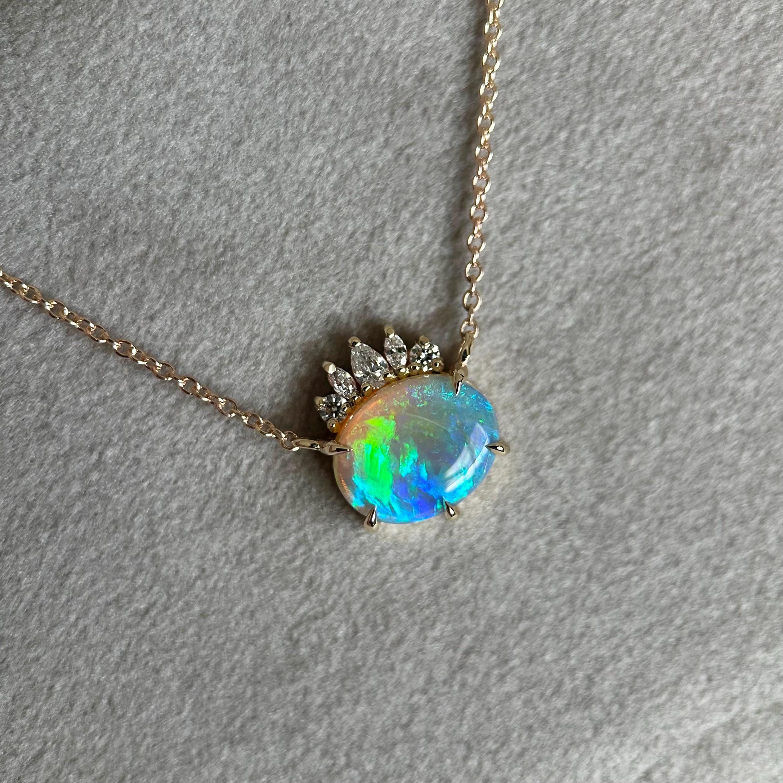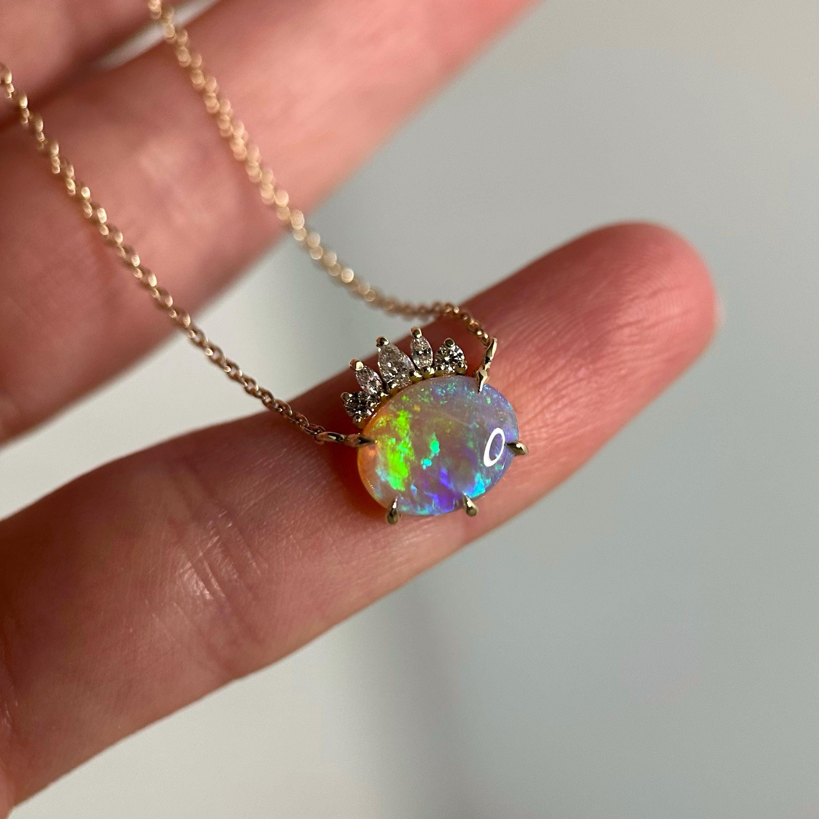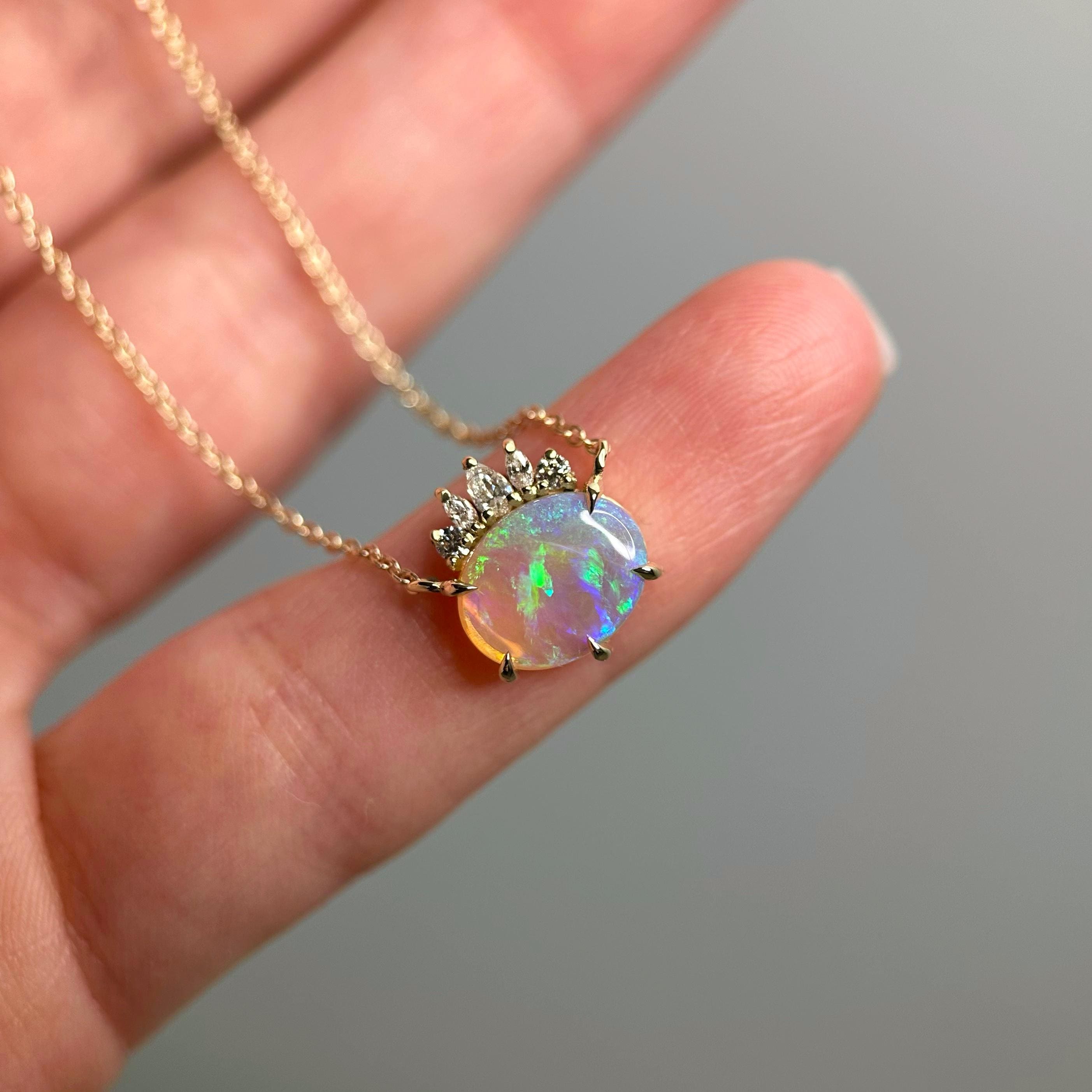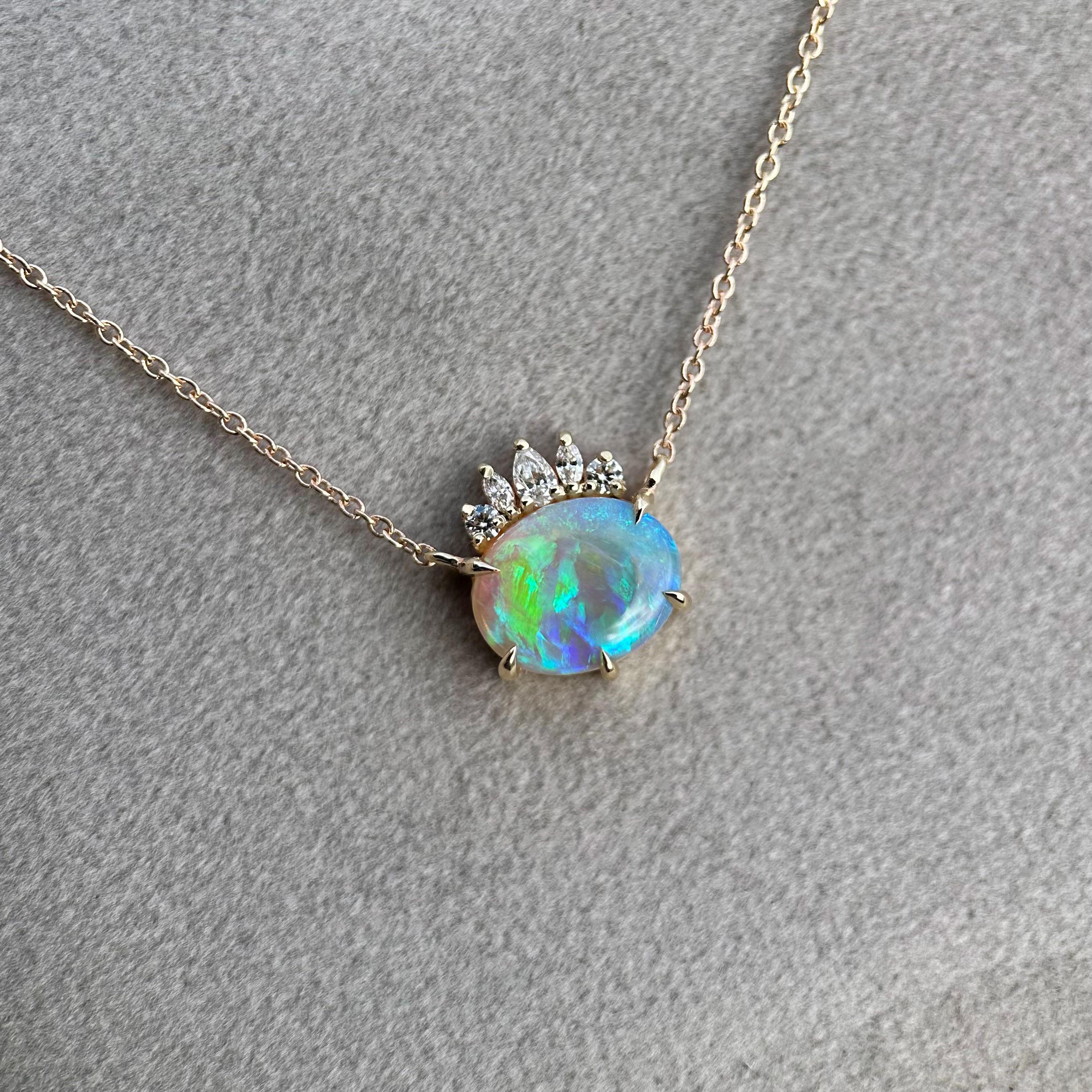 14K Yellow gold necklace with Australian Opal and Diamonds