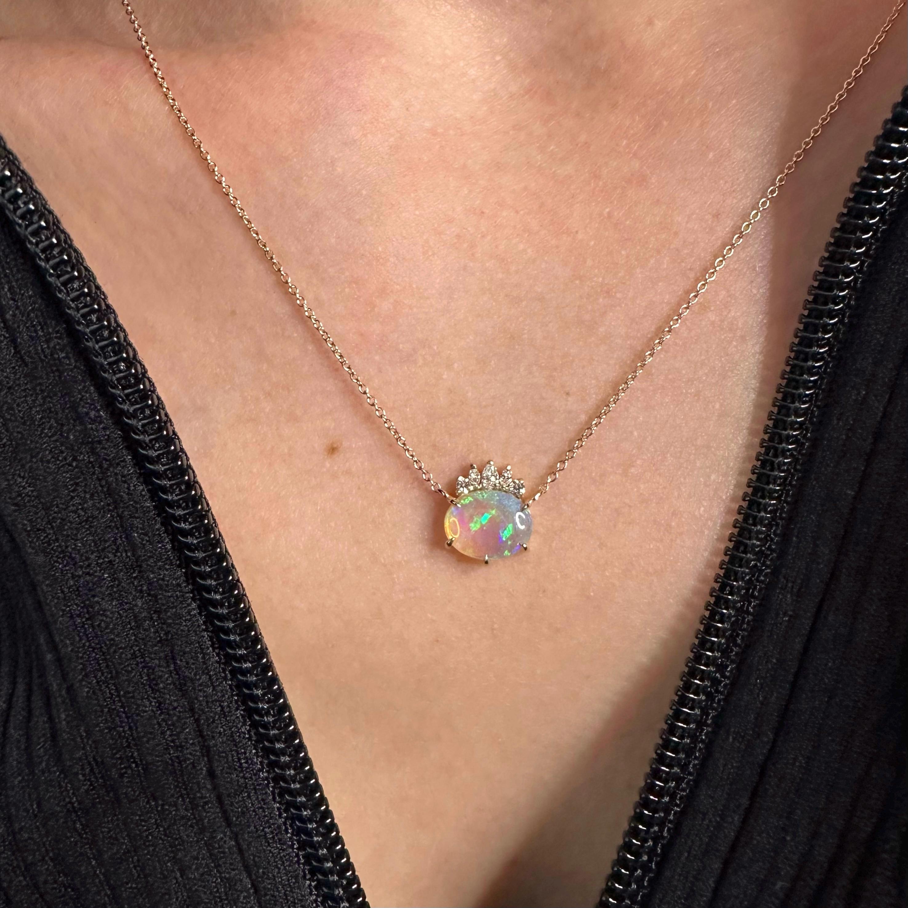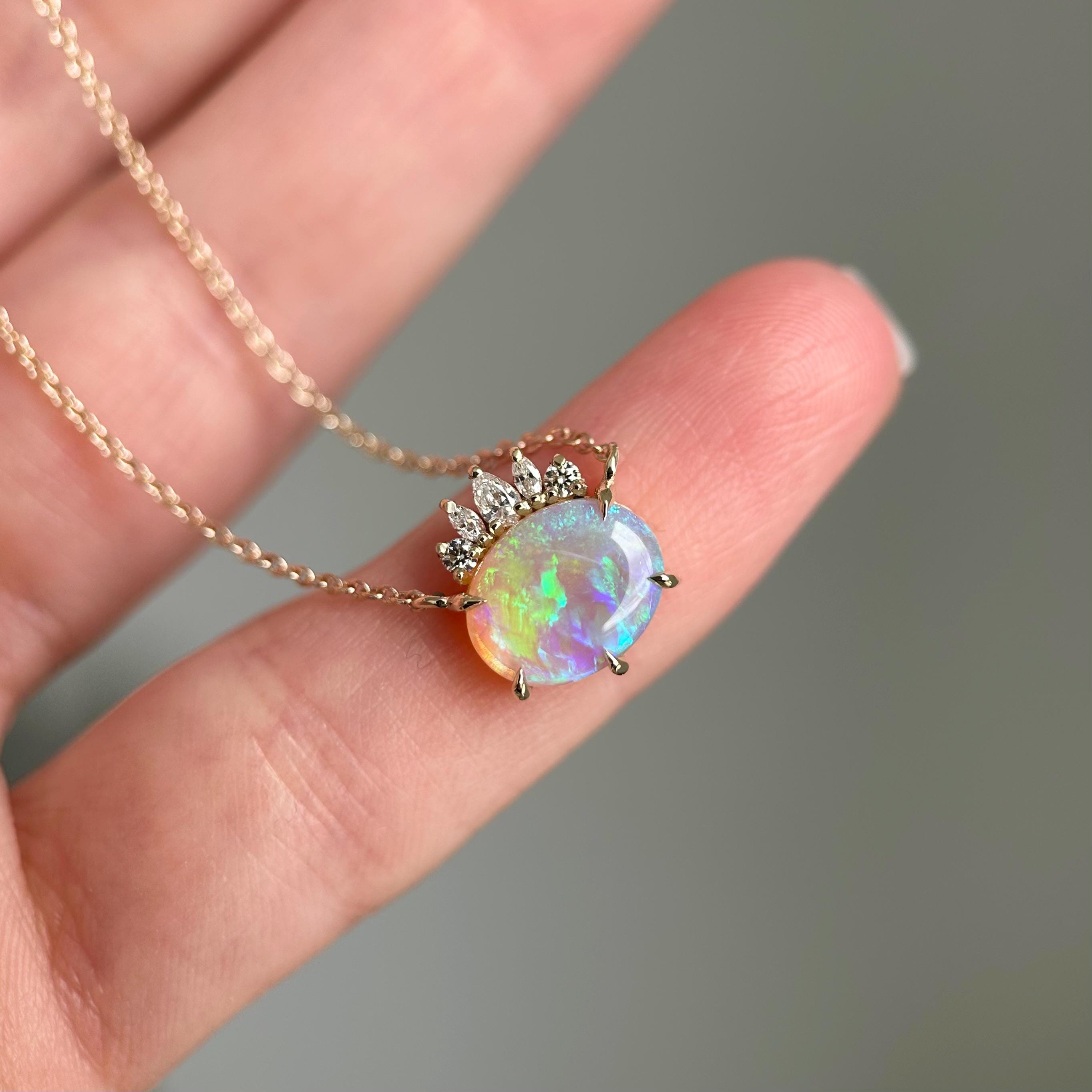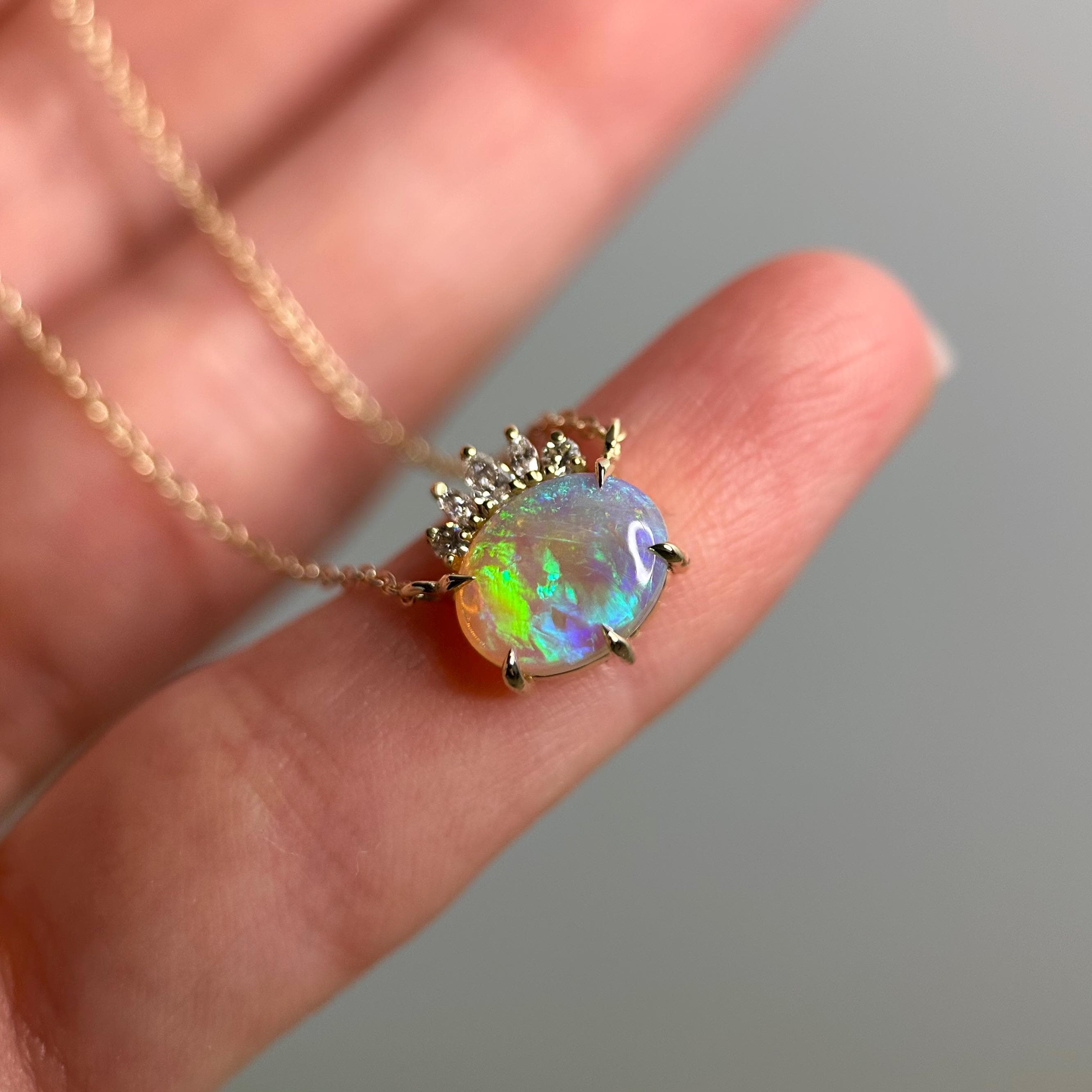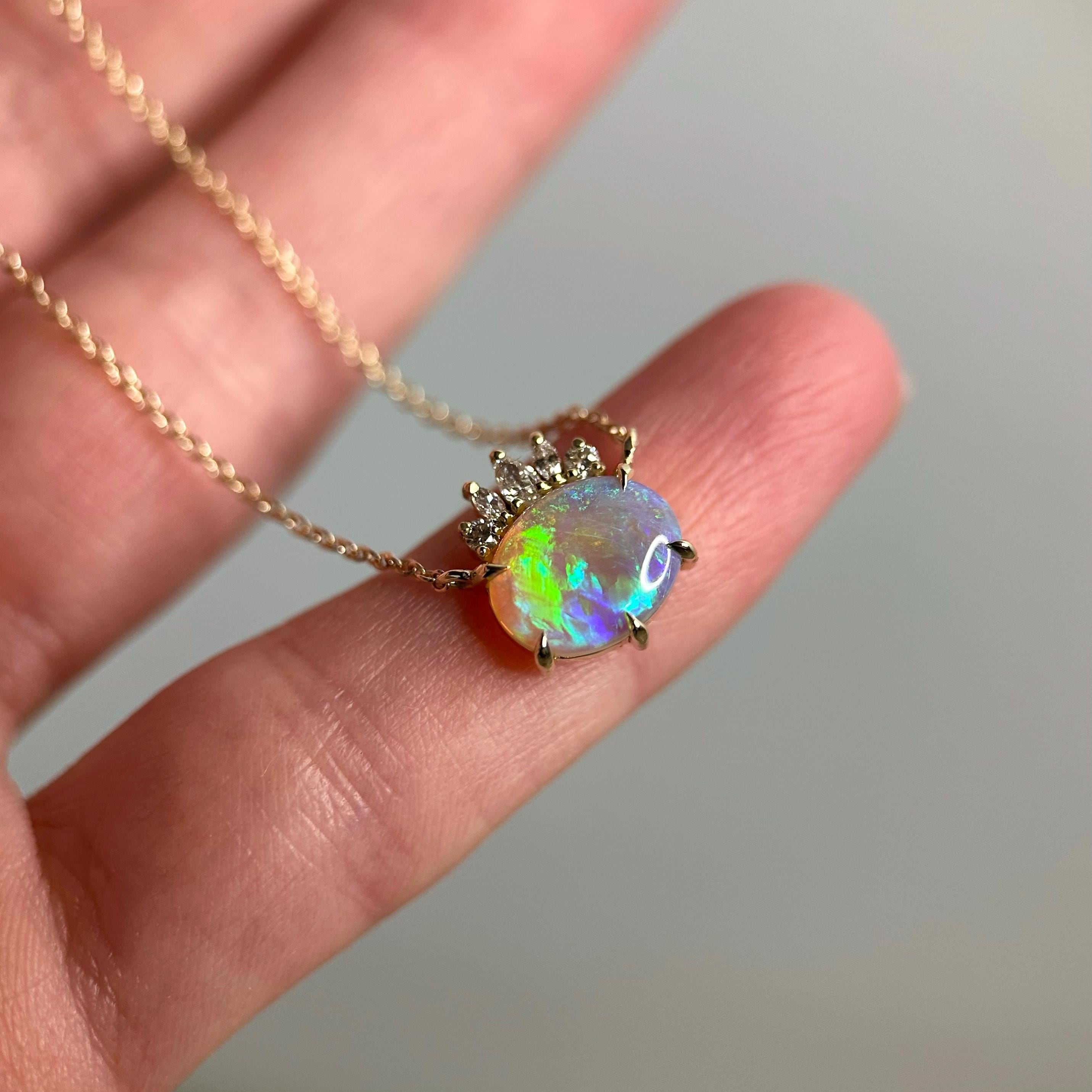 14K Yellow gold necklace with Australian Opal and Diamonds