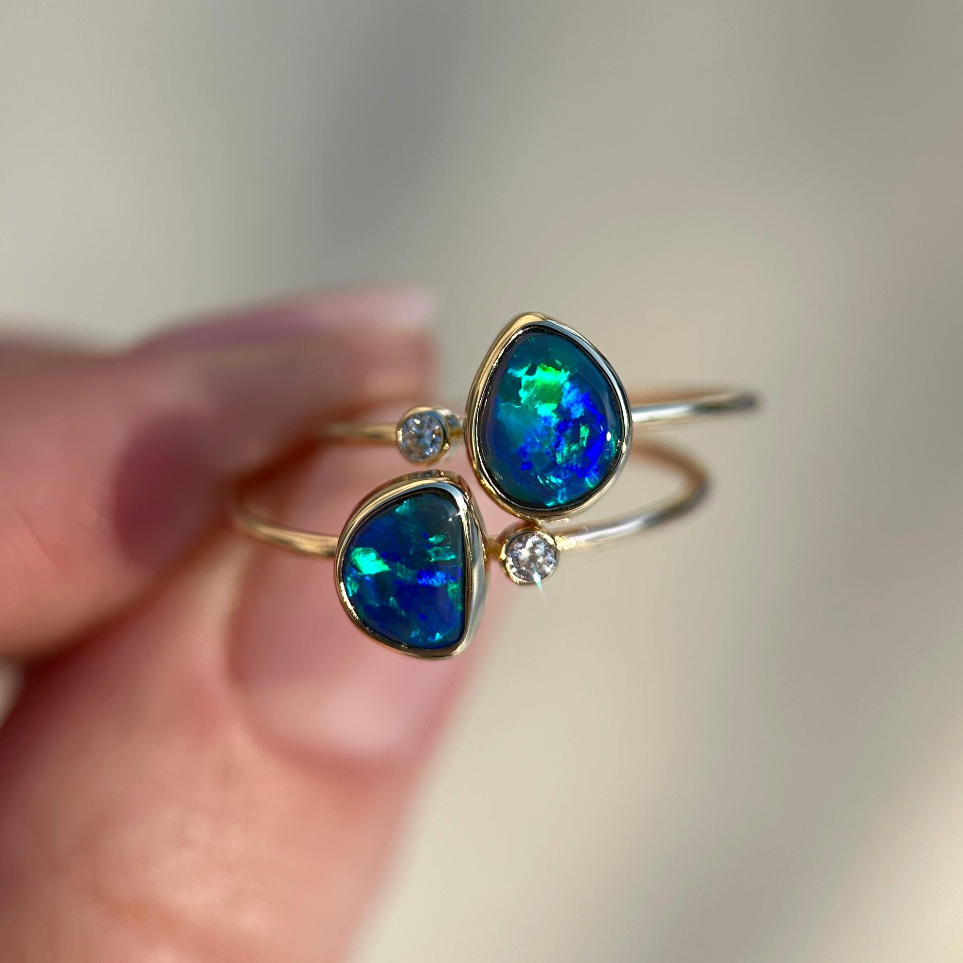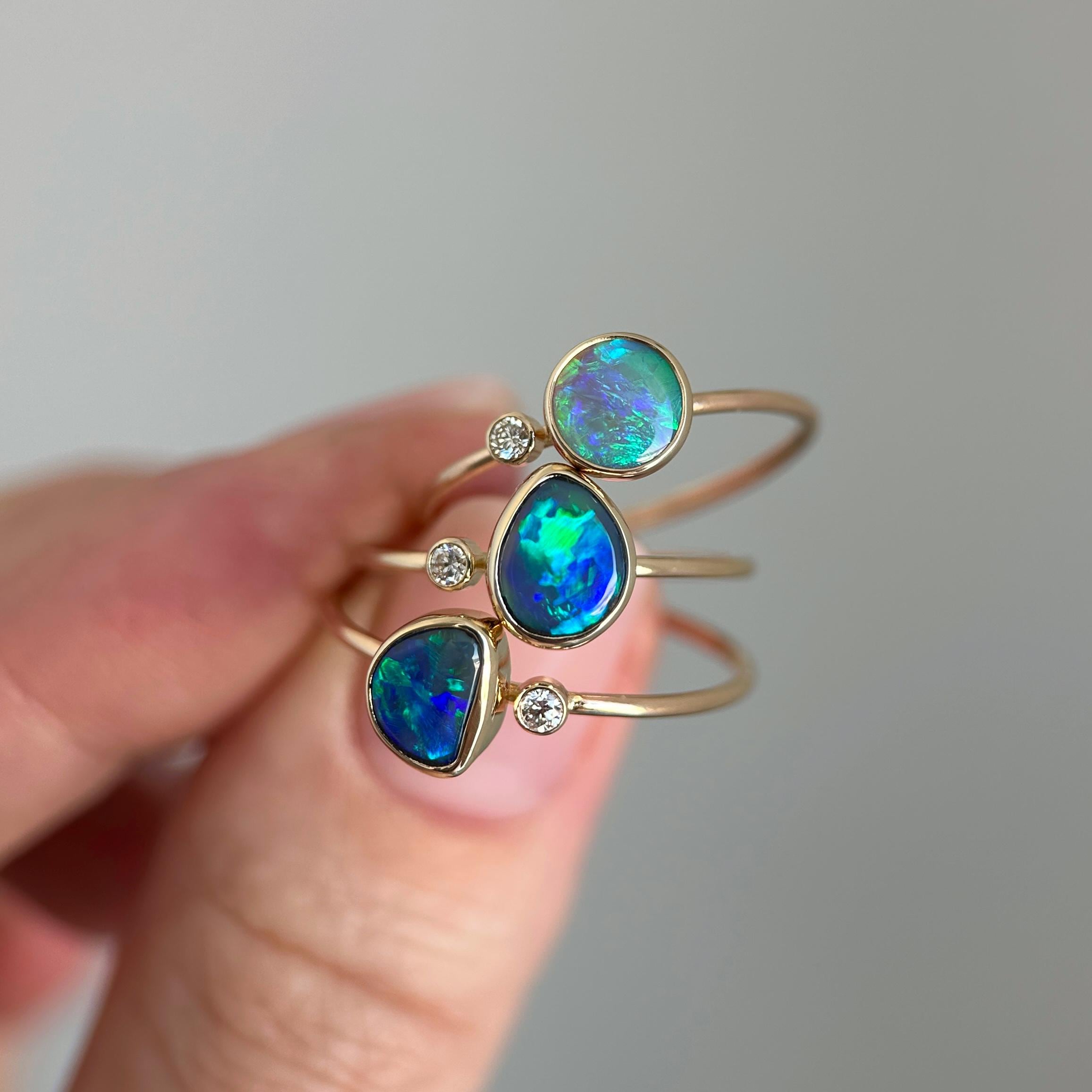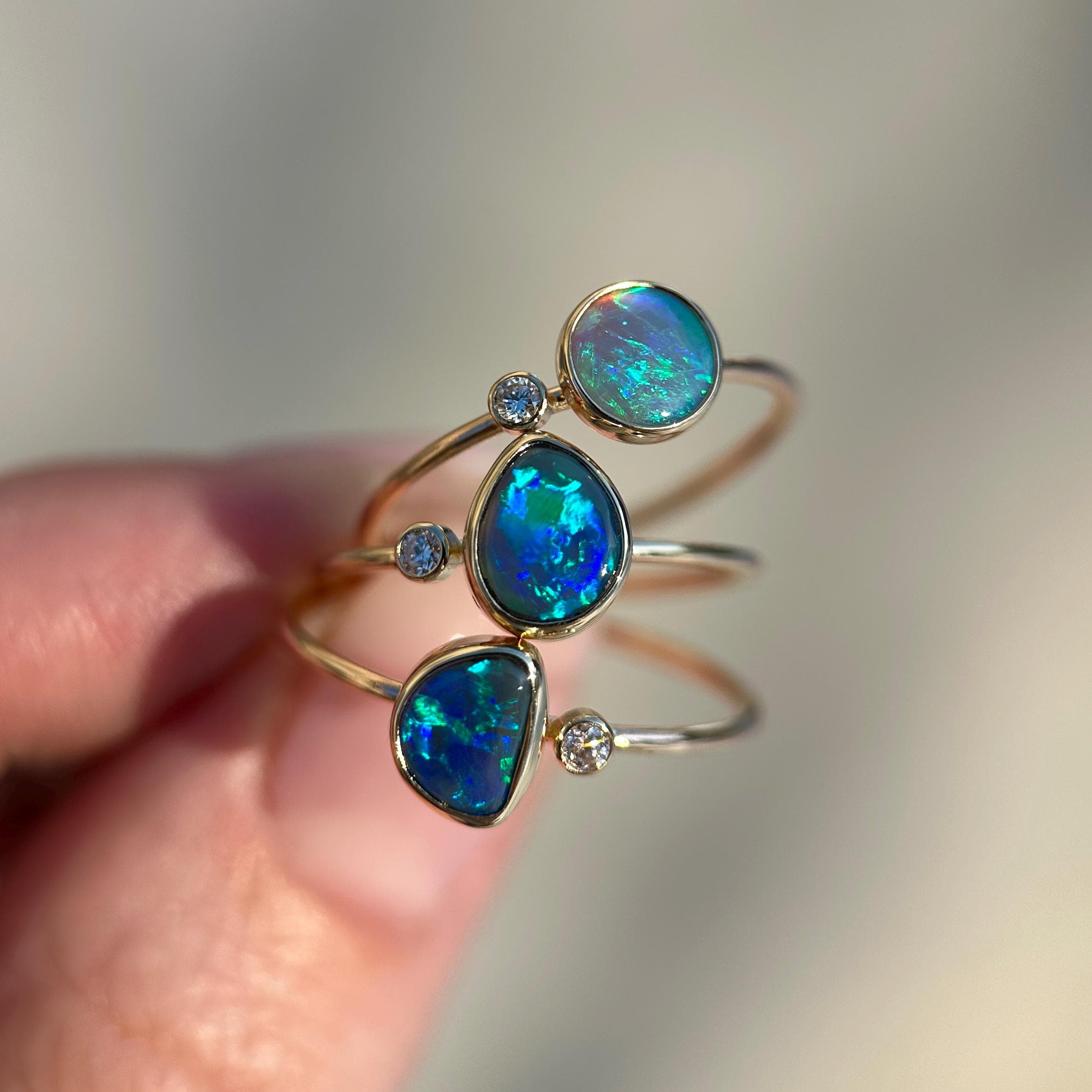 Opal size: SZ 6 – 6.9×5.5mm 0.65 ct; SZ 7 – 6mm 0.4 ct; SZ 8 – 6×4.8mm 0.55 ct