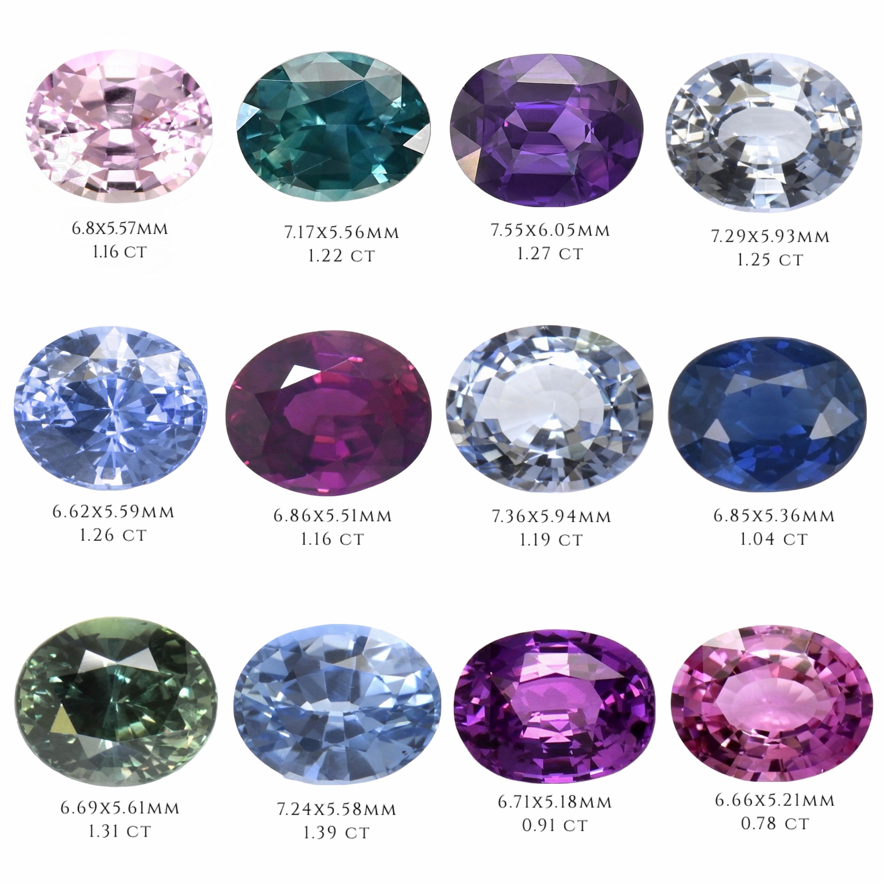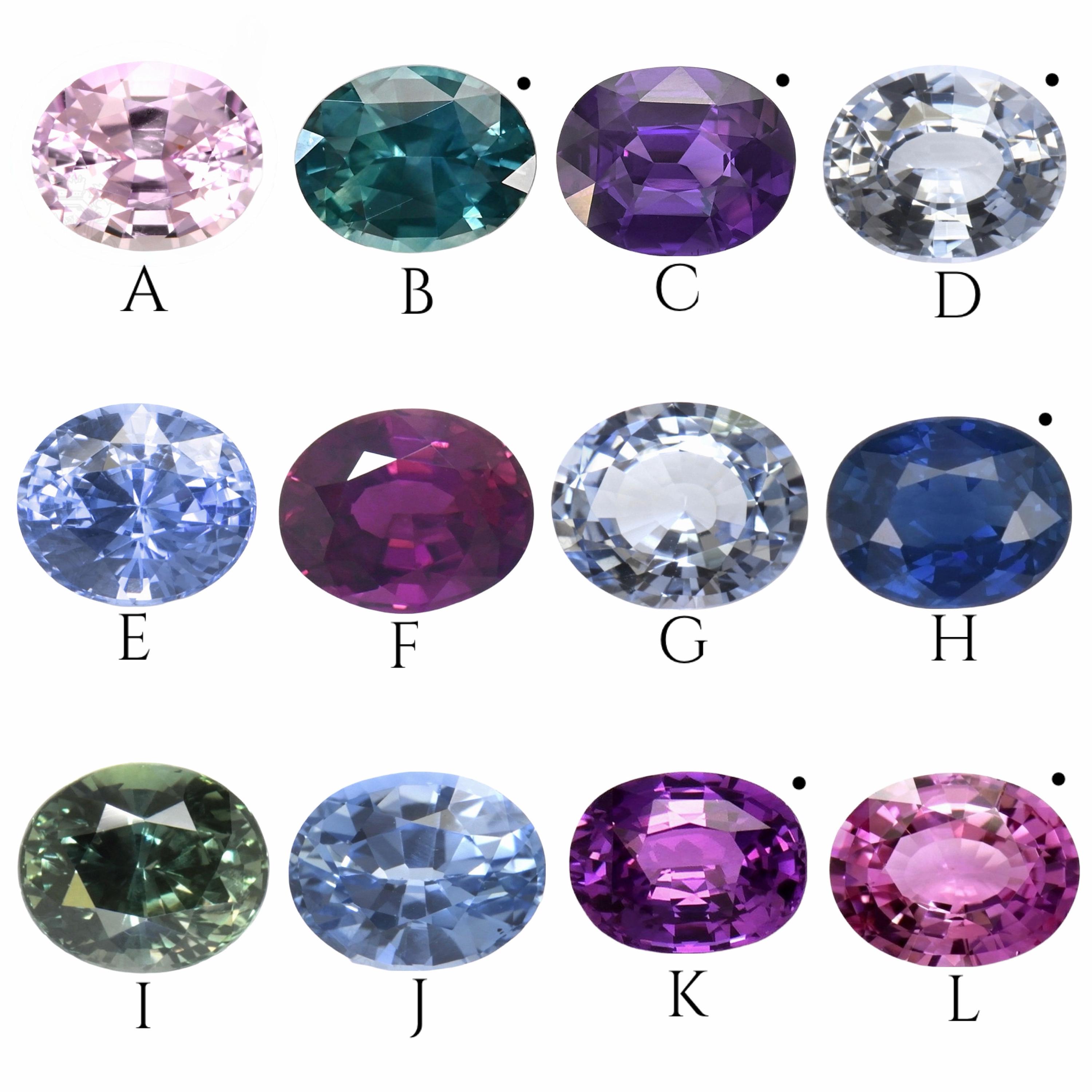 Stones: natural sapphires (stones with a dot next to them are heated, all other sapphires are unheated)