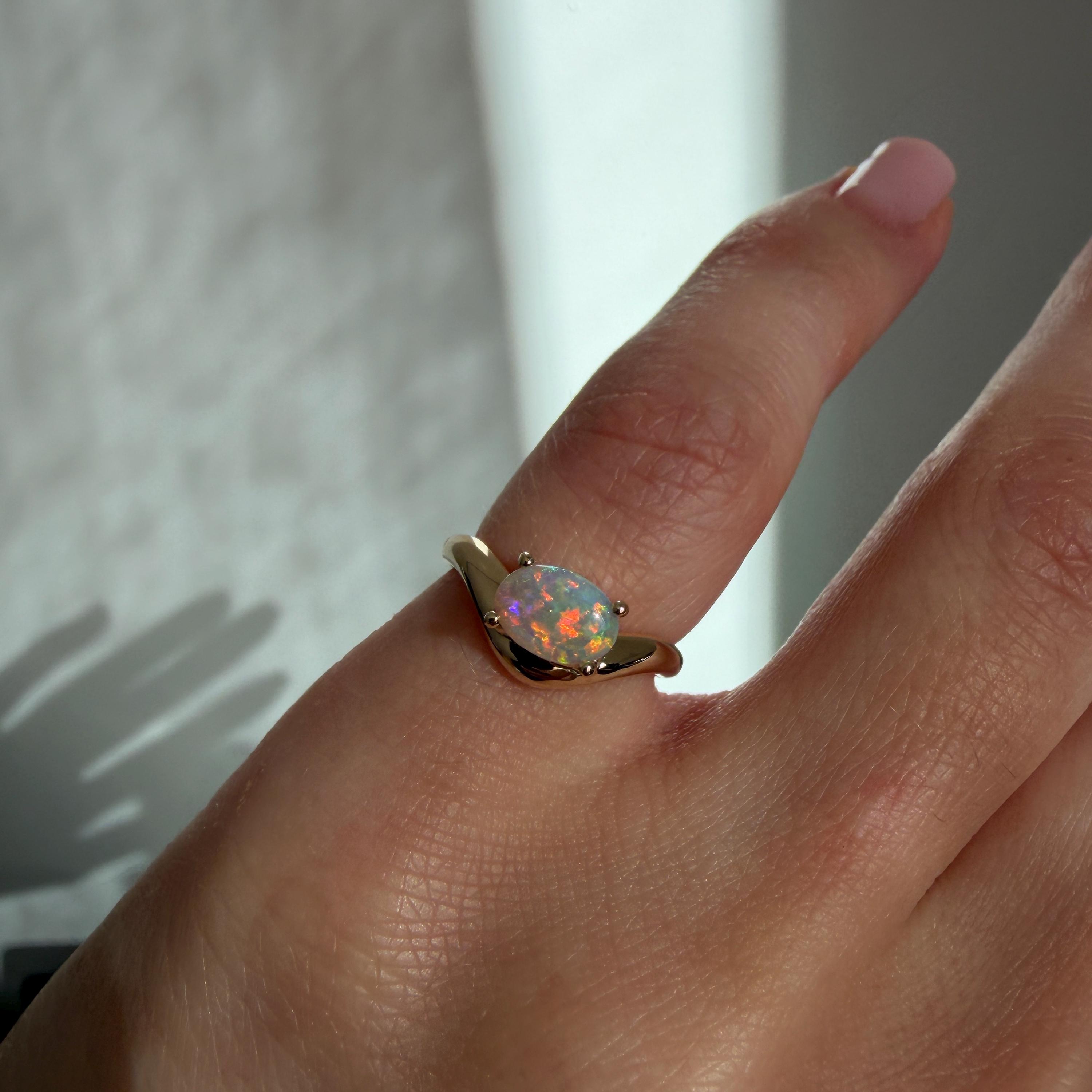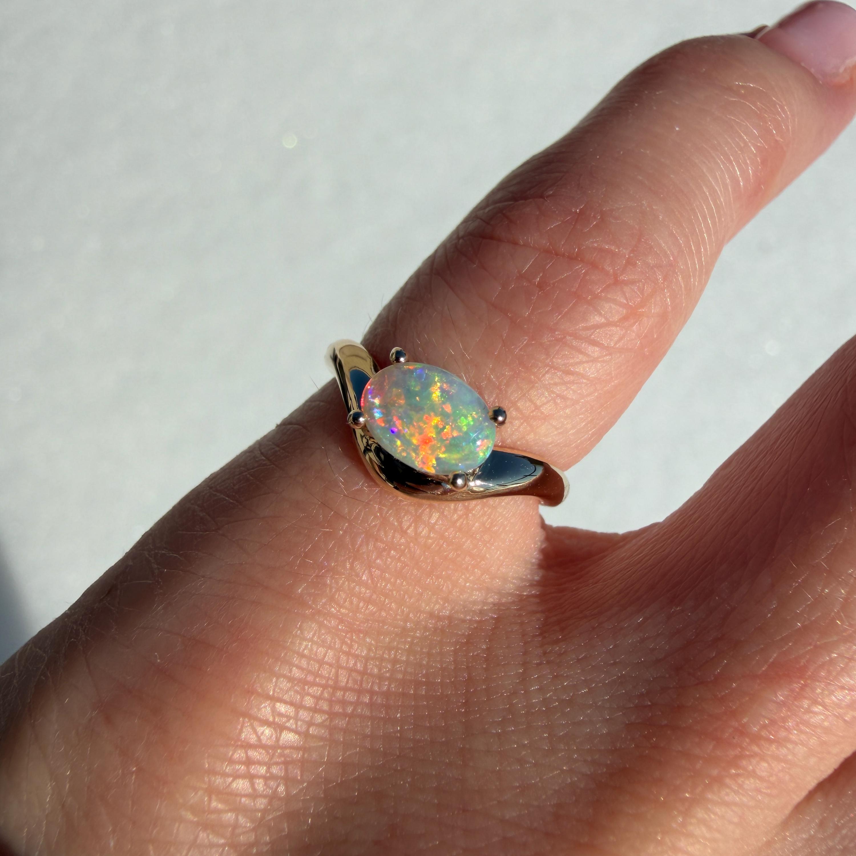 Custom made 14K Yellow Gold or Sterling silver Caia ring with Natural Sapphire or Australian Opal