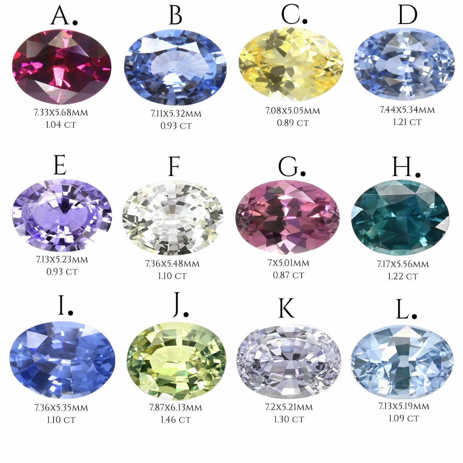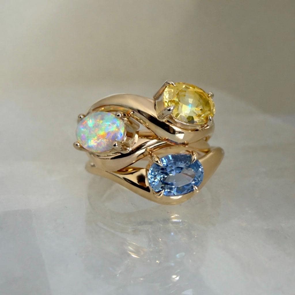 * Sizes of stones set in the rings from photos are Blue sapphire - 6.99x5.20mm, Yellow sapphire - 7.03x5.06mm, Champagne diamond - 7.88x5.46mm, Opal - 7x5mm.