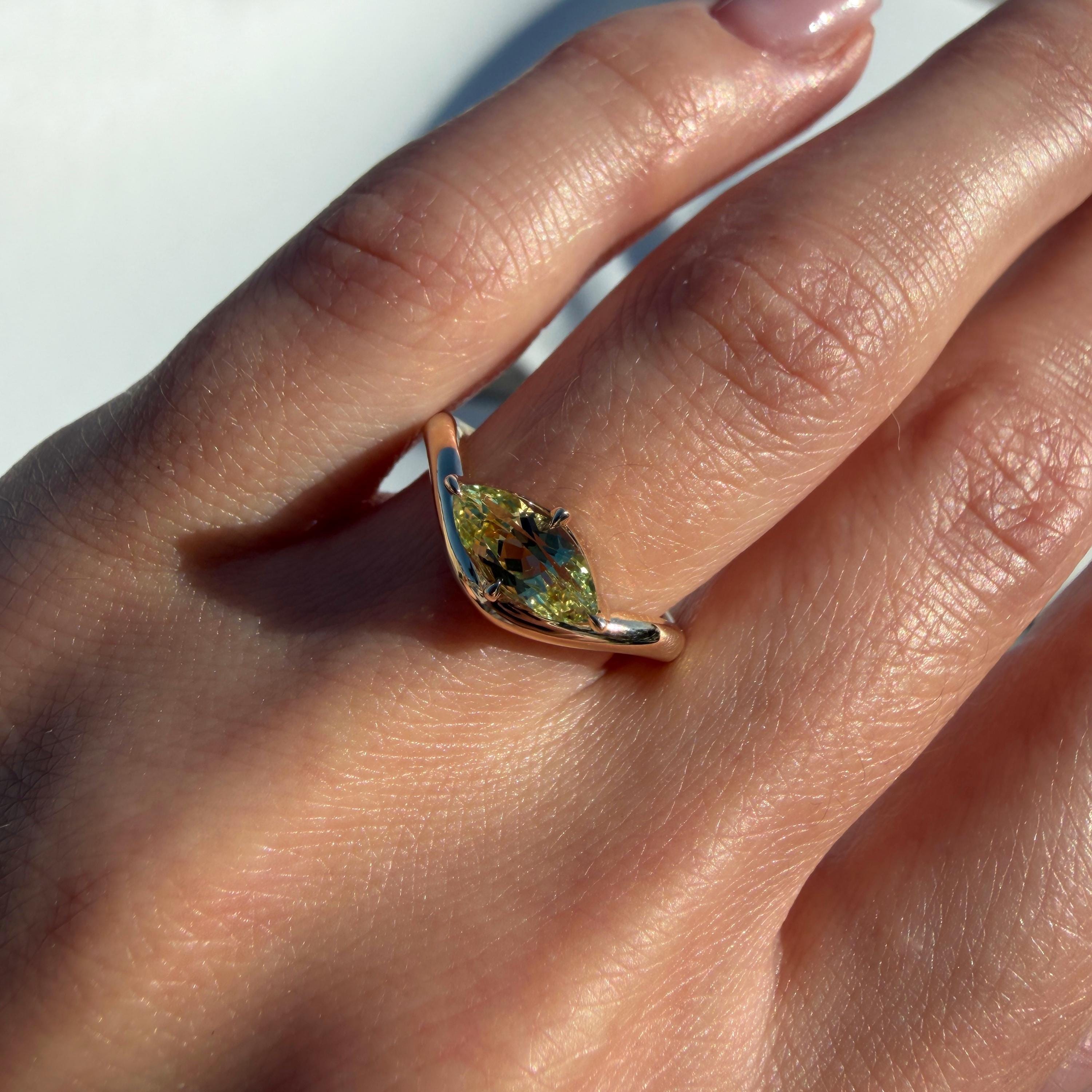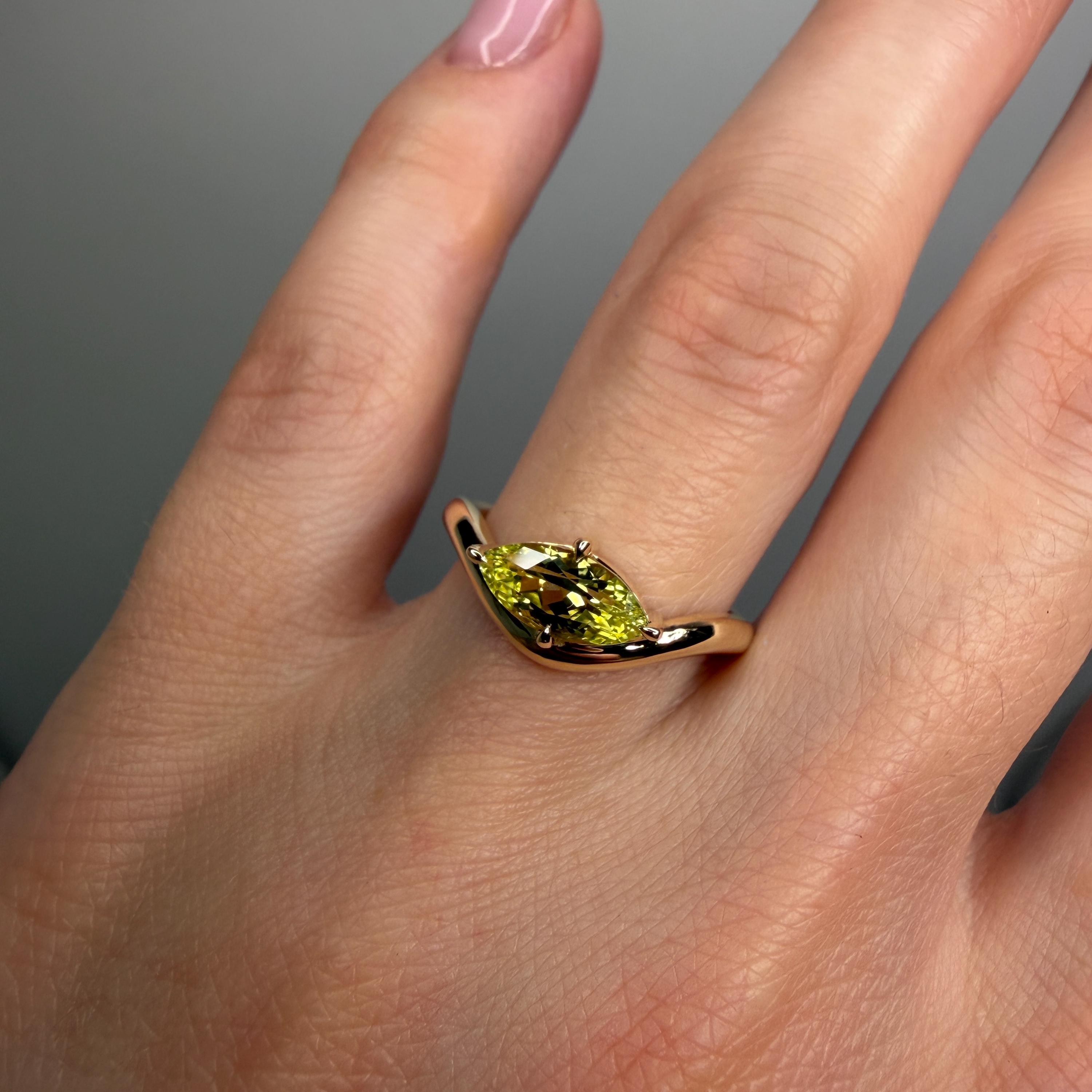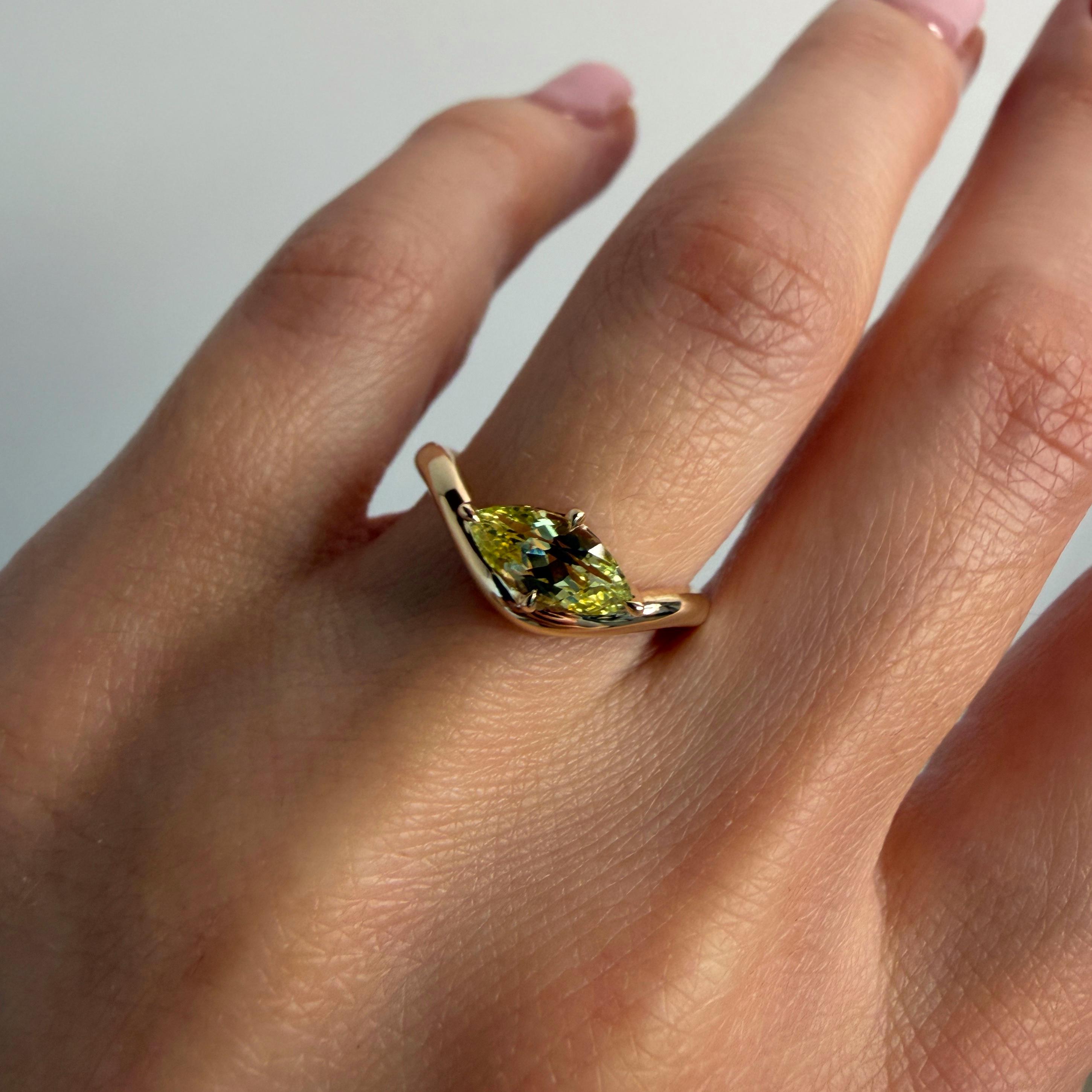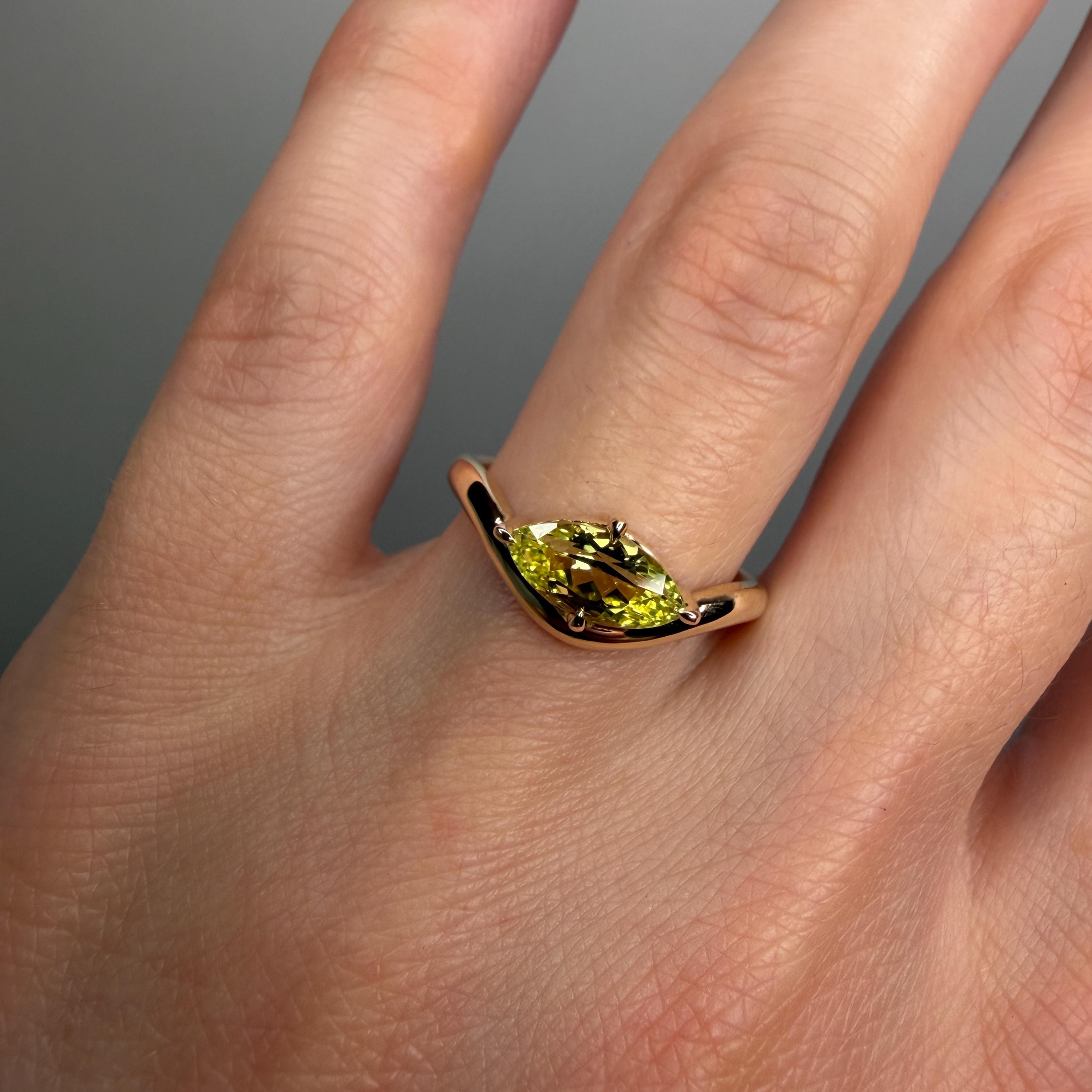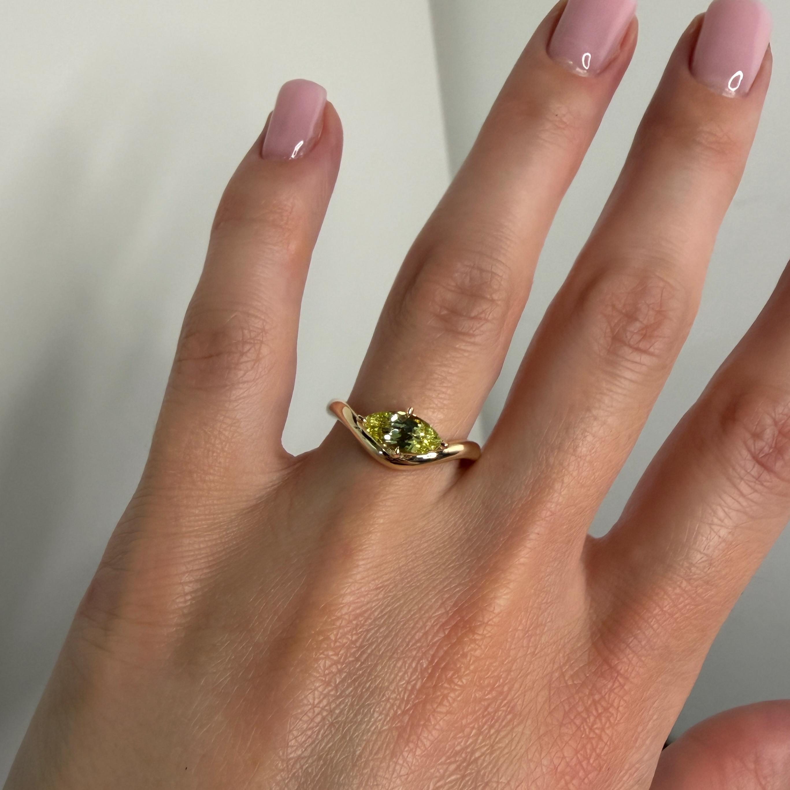 14K Yellow Gold Mini Caia ring with Chrysoberyl marquise