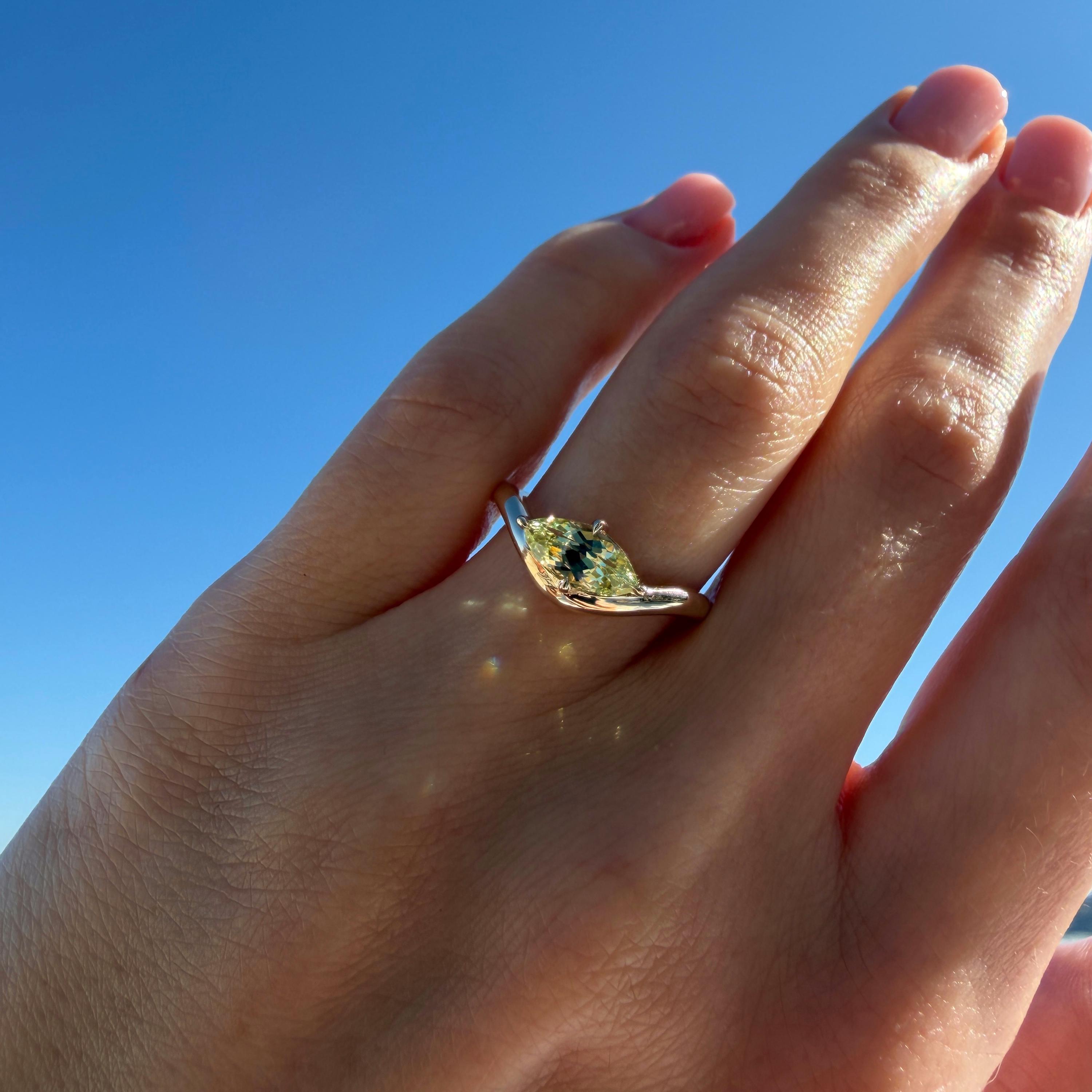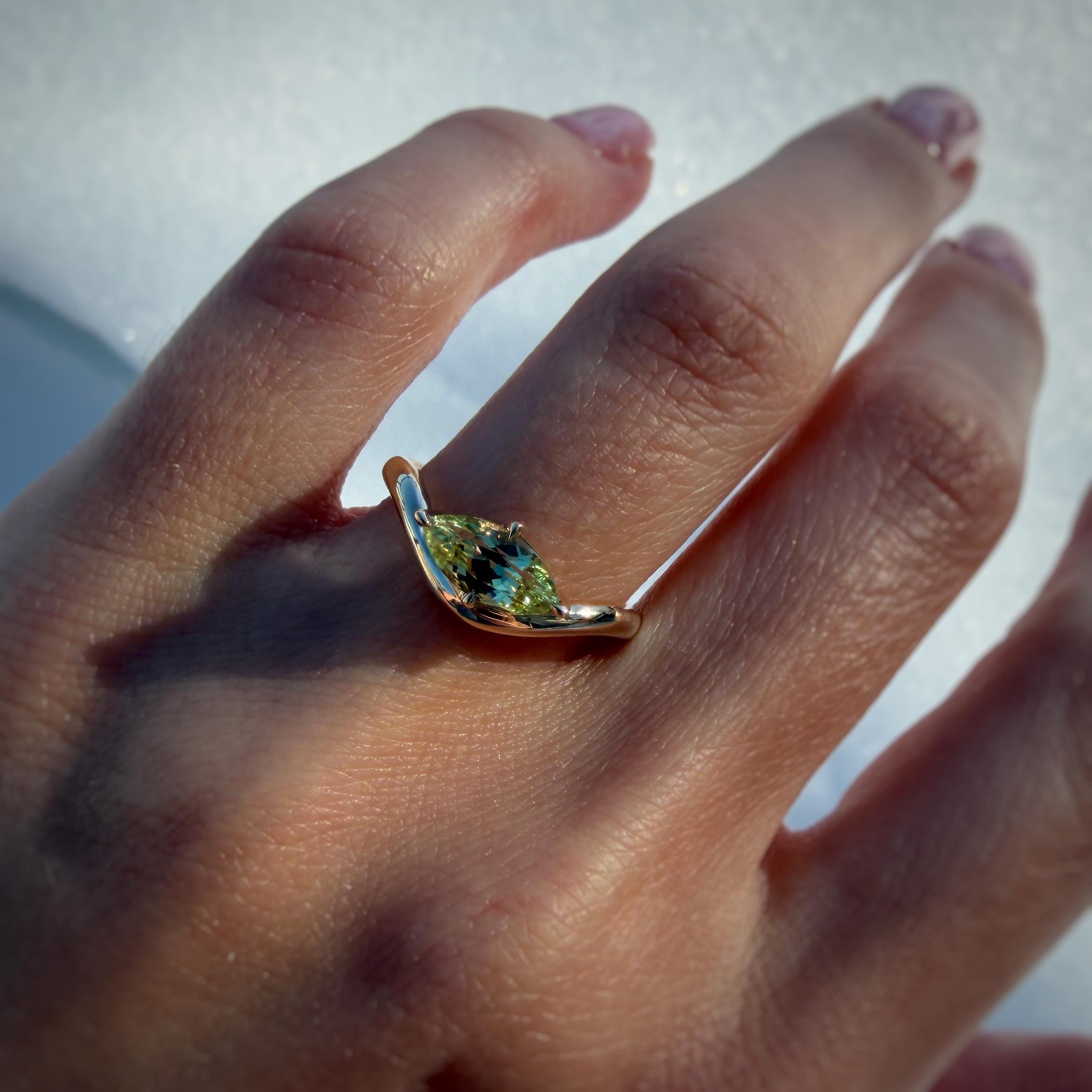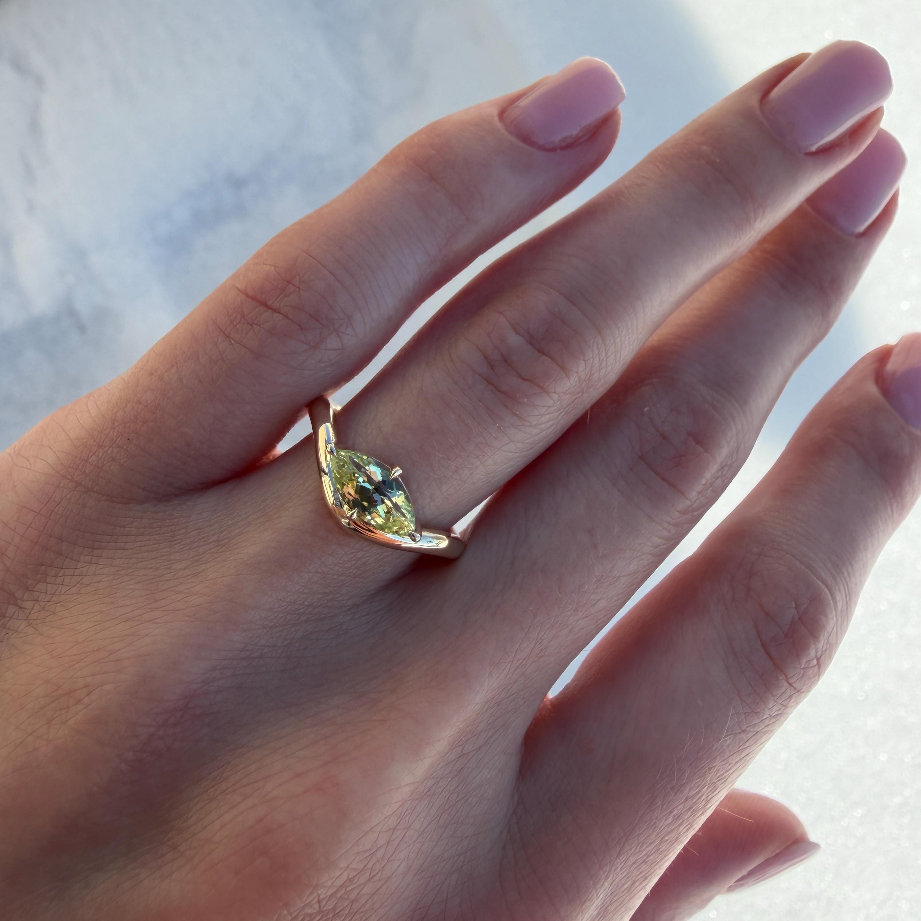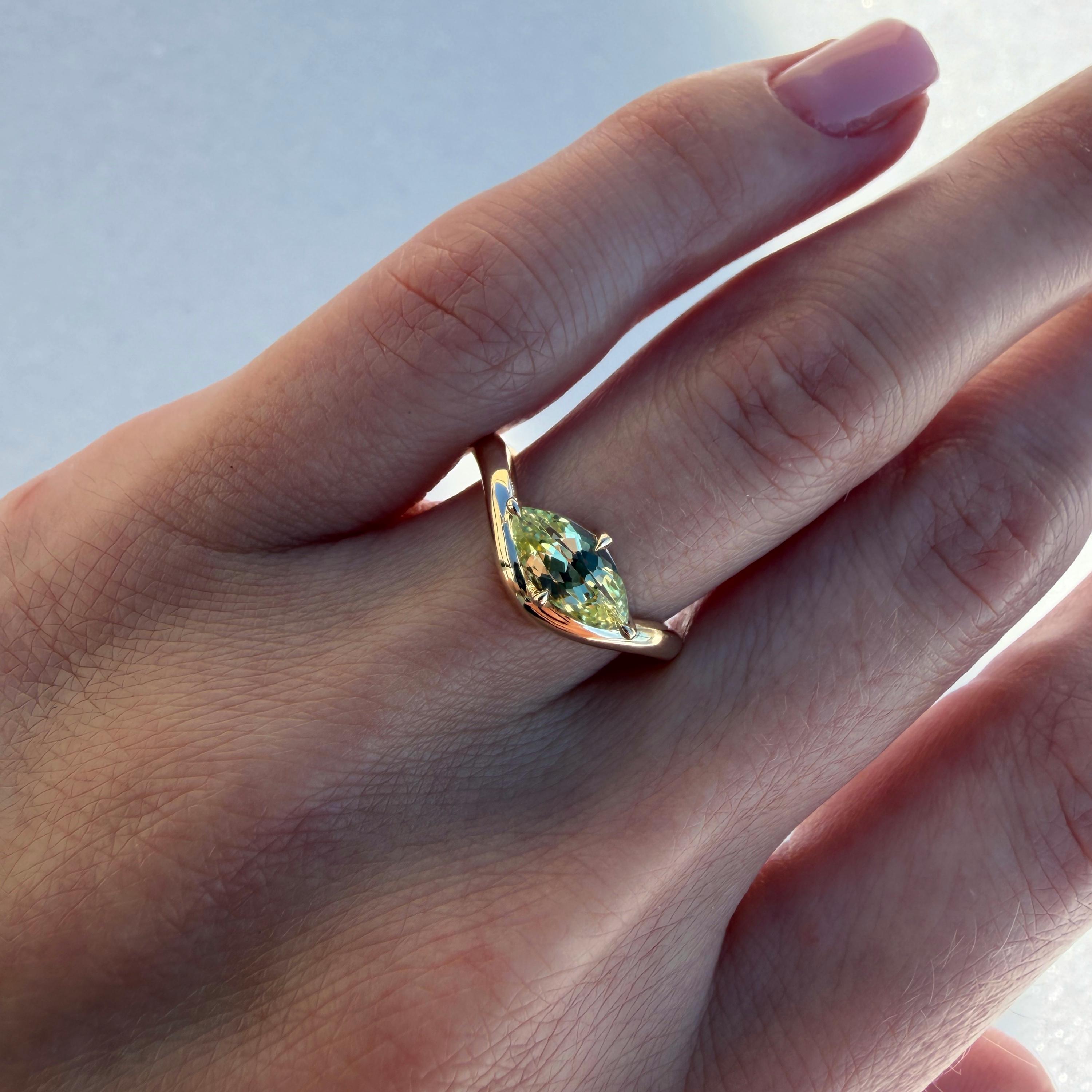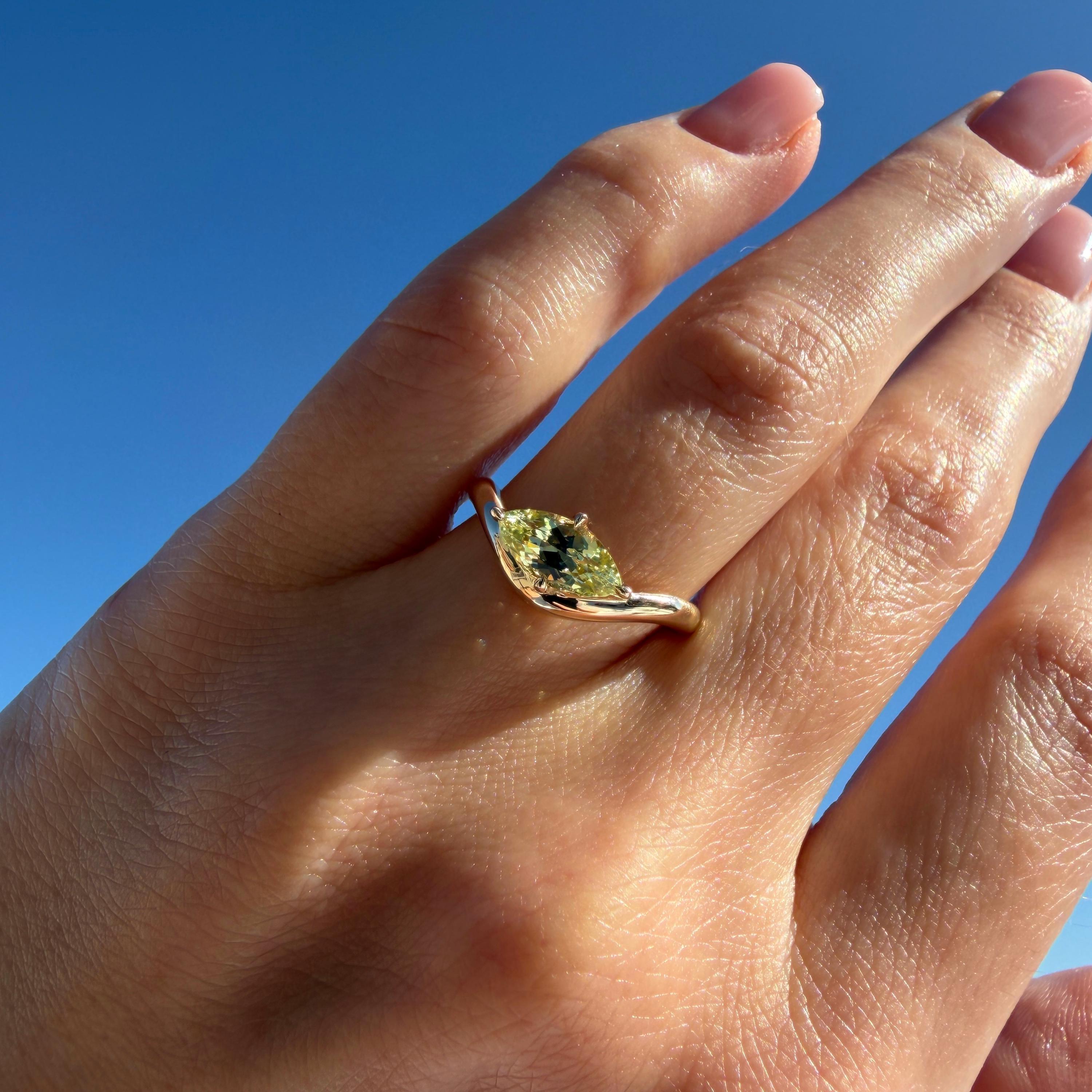14K Yellow Gold Mini Caia ring with Chrysoberyl marquise