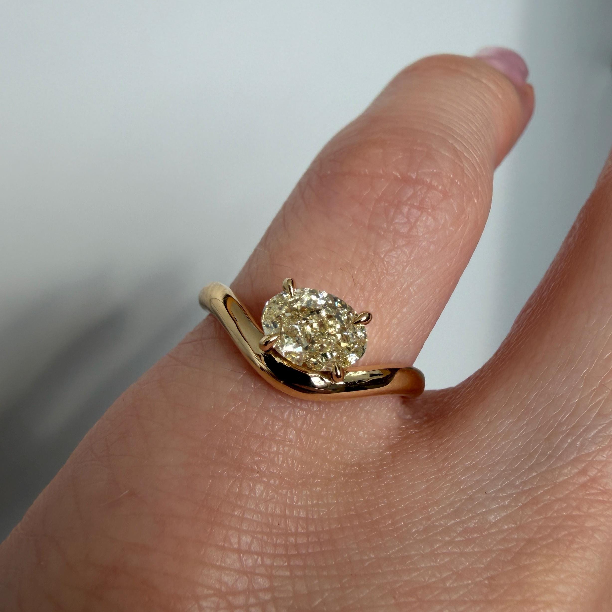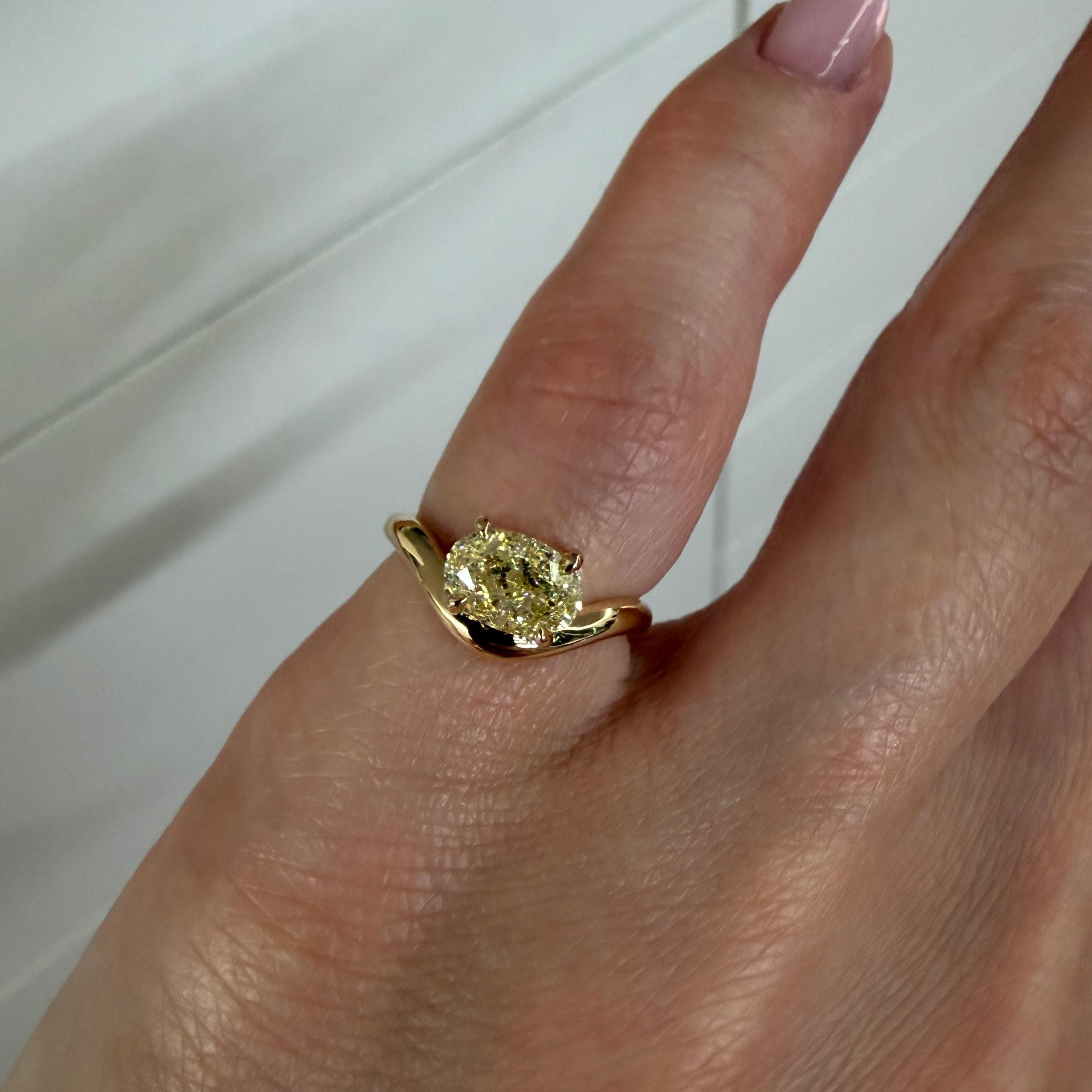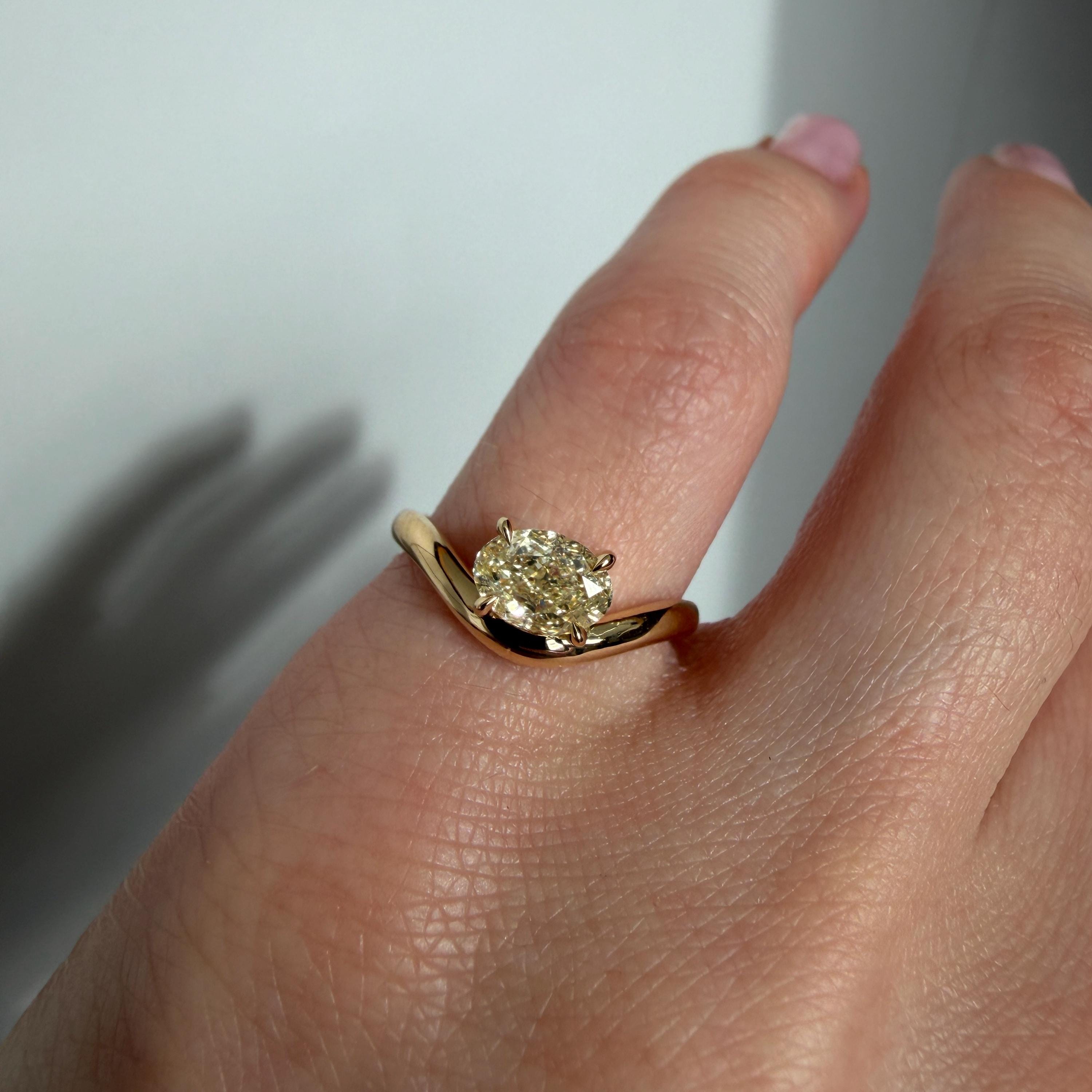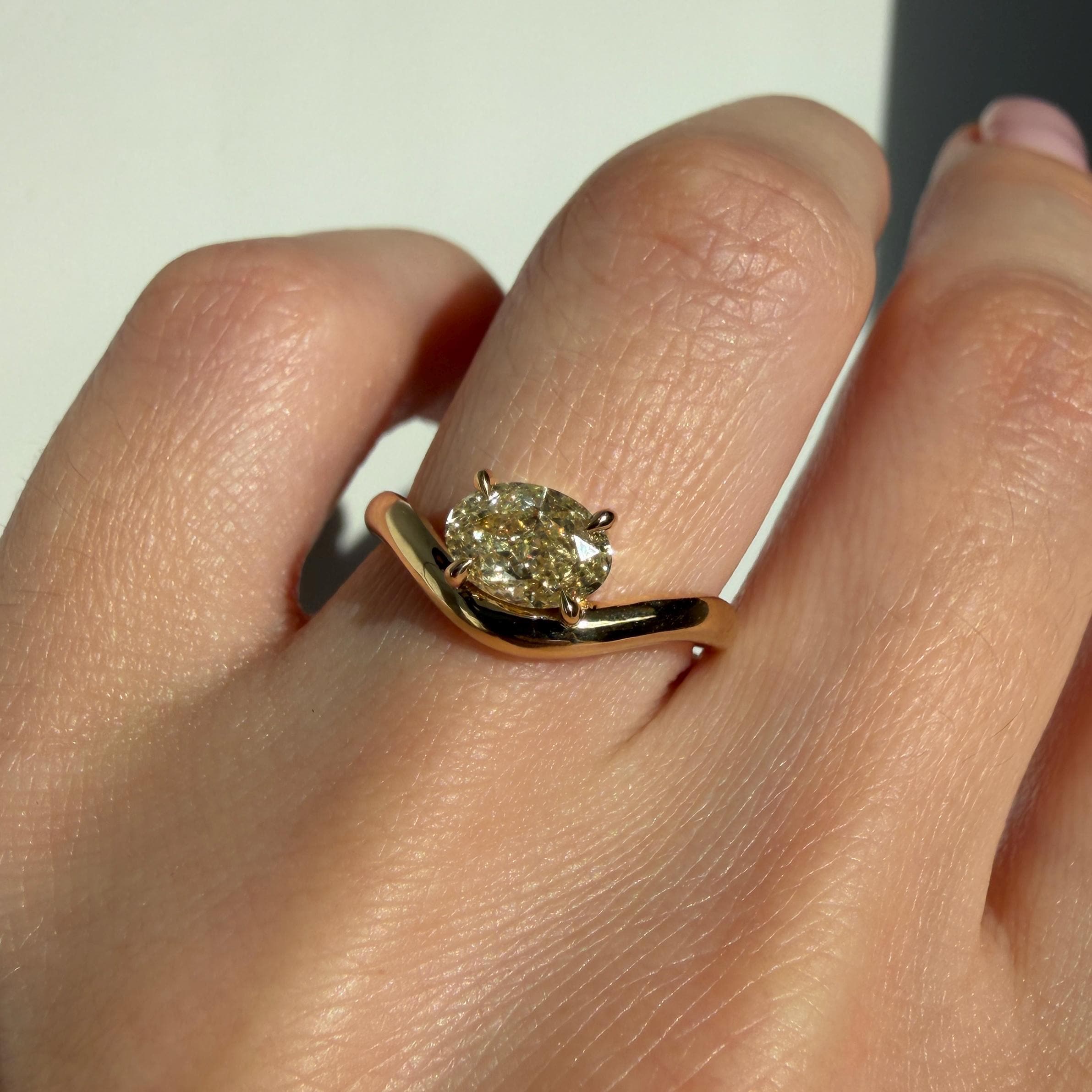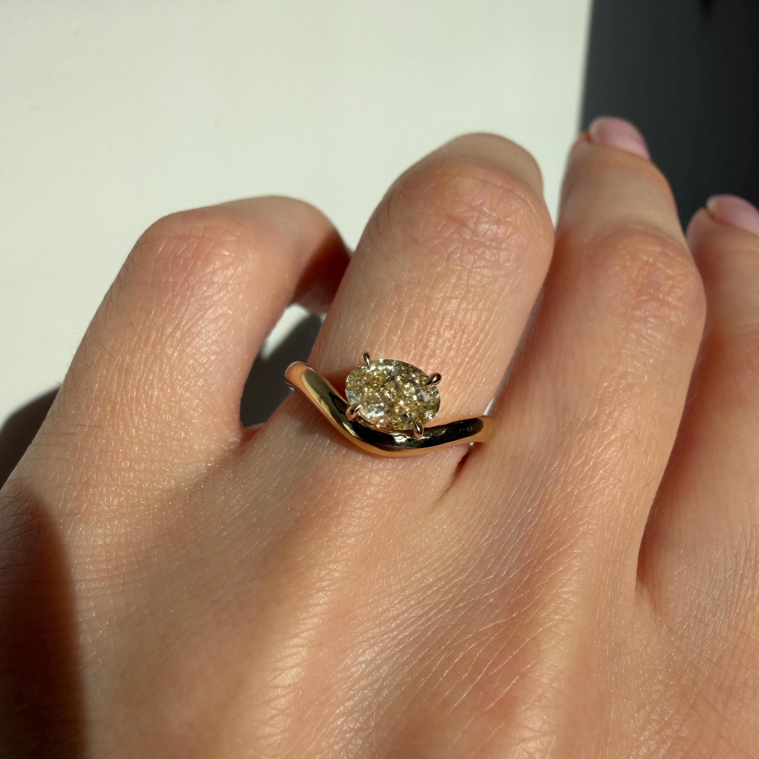 Custom-made 14K Yellow Gold Caia Mini ring with natural oval diamond