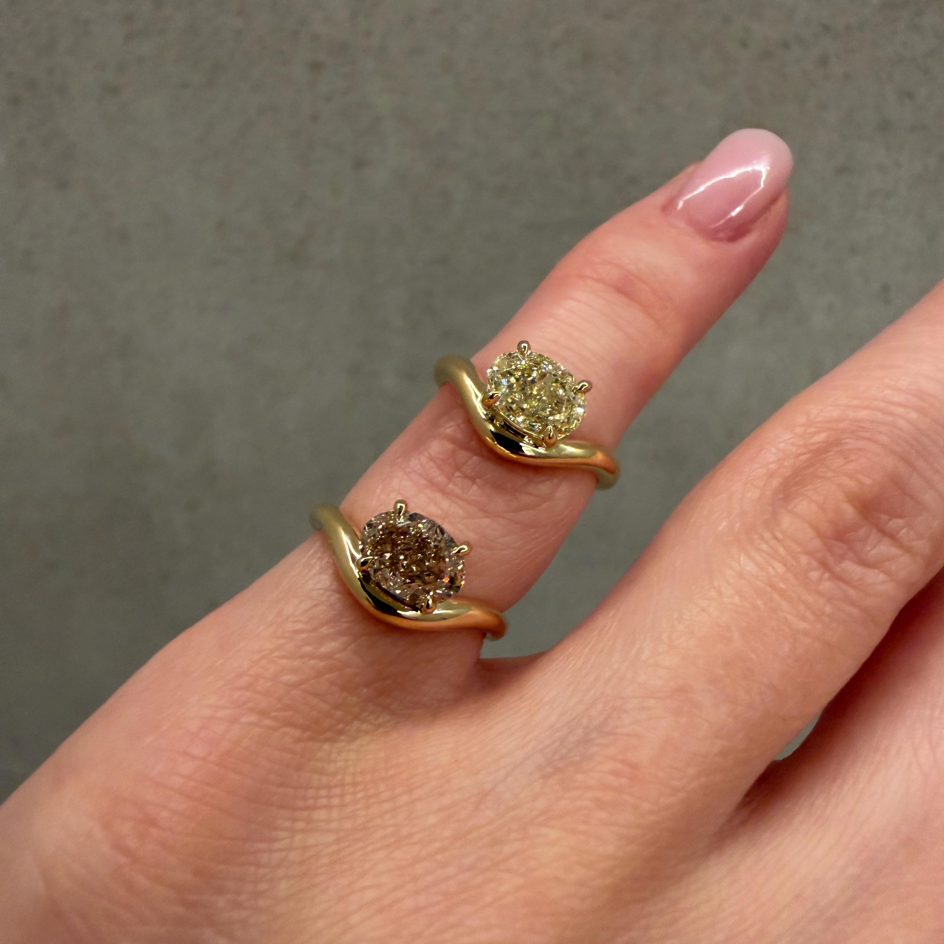18K Yellow Gold Mini Caia pinky ring with light brown diamond