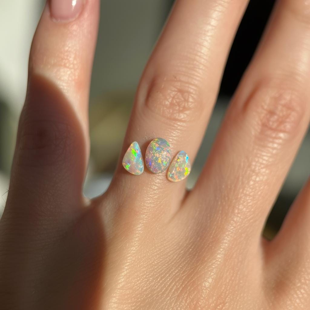 Custom made 14K Molten yellow gold ring with Australian Dark and Crystal Opals